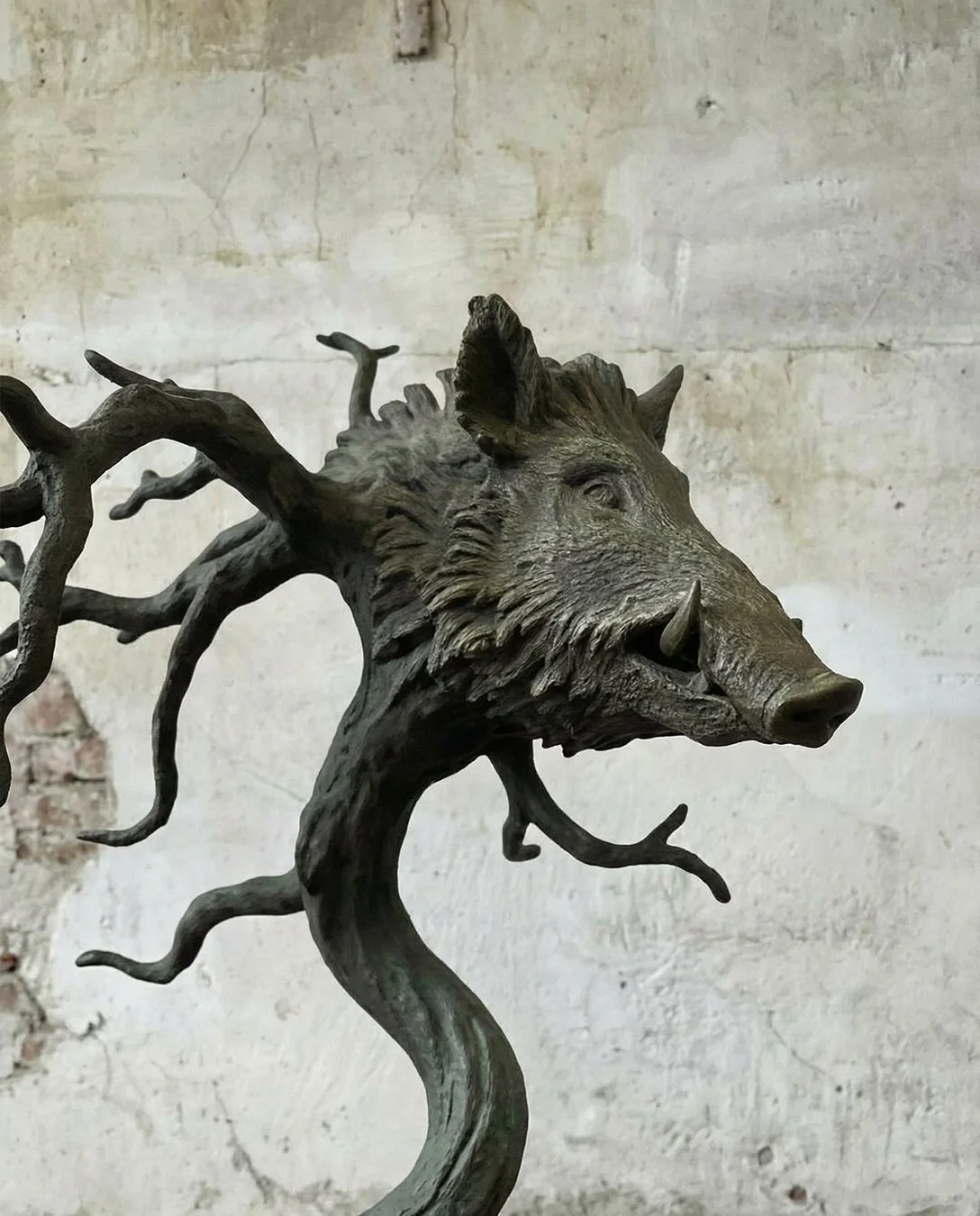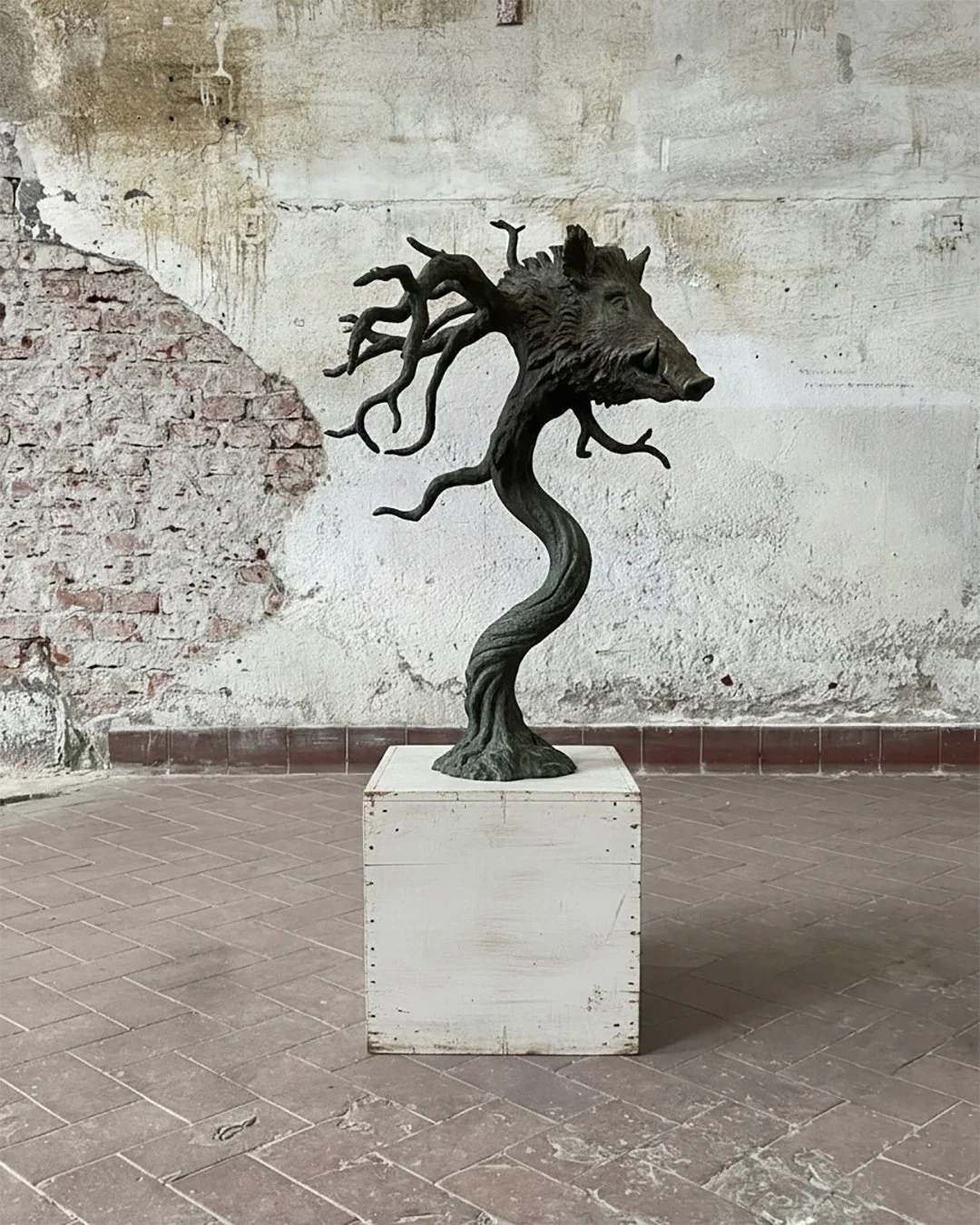 Evolutionary Theory (Psychic Visual Archetypes). 1999©. 125x65x60 cm, patinated wood.